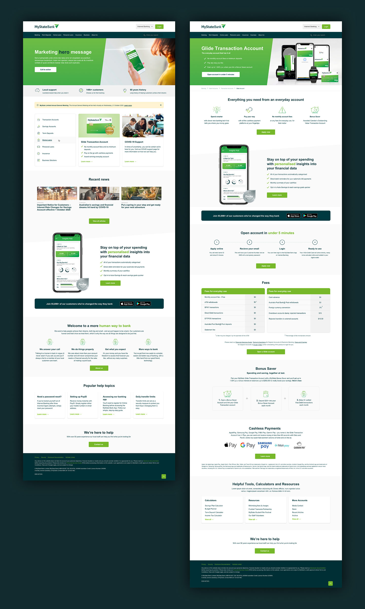 UX and UI Design to help improve customer conversions across the MyState Bank website